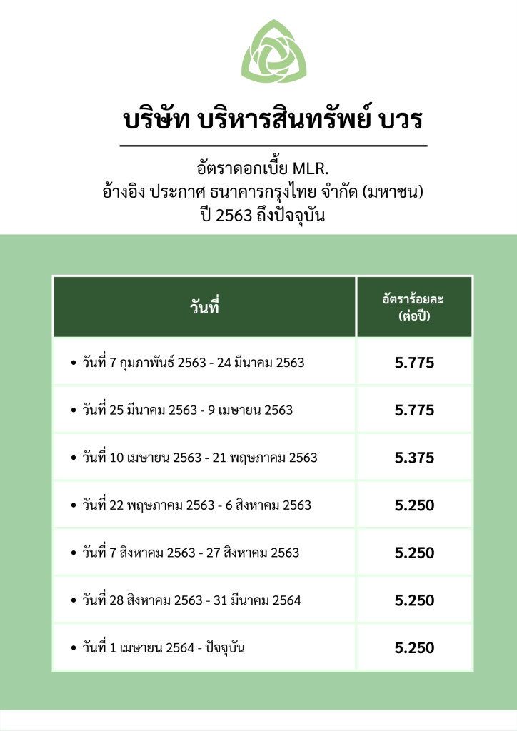 บริษัท บริหารสินทรัพย์ บวร อัตราดอกเบี้ย MLR
